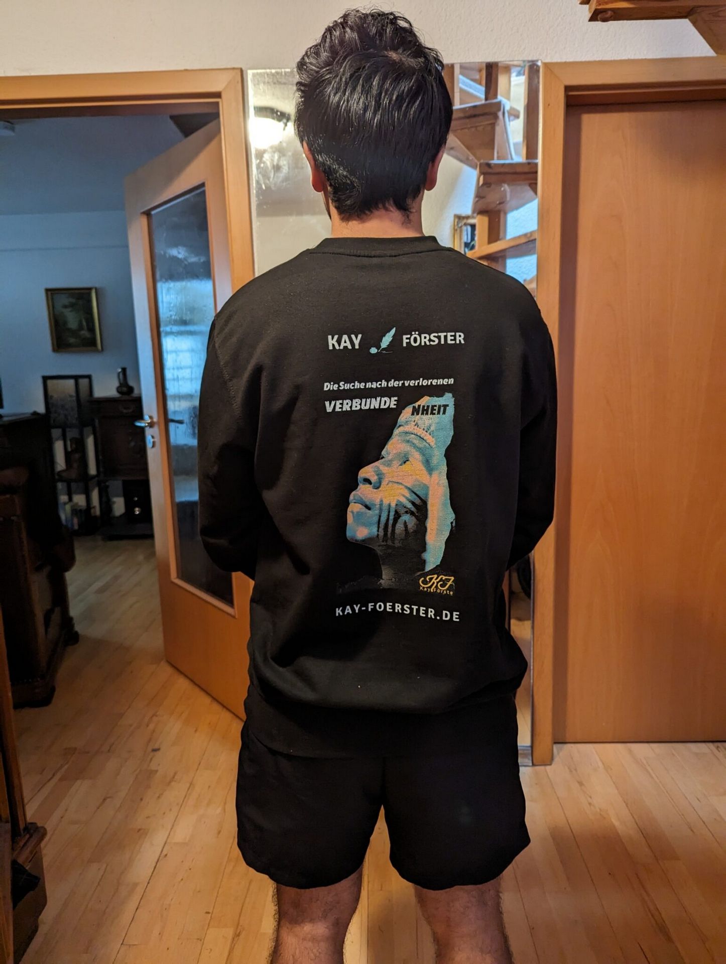 „Ein einzigartiges literarisches Kunstwerk verdient ein ebenso einzigartiges Accessoire – der limitierte Pullover von Kay Förster, inspiriert von seinem bewegenden Buch ‚Auf der Suche nach der verlorenen Verbundenheit‘. Dieser Pullover wurde nicht einfach hergestellt, sondern sorgsam gestaltet und gefertigt, um die Essenz der Geschichte zu reflektieren. In einer Auflage von nur 50 Stück weltweit verkörpert er die Tiefe und Bedeutung, die in den Worten von Kay Förster stecken.